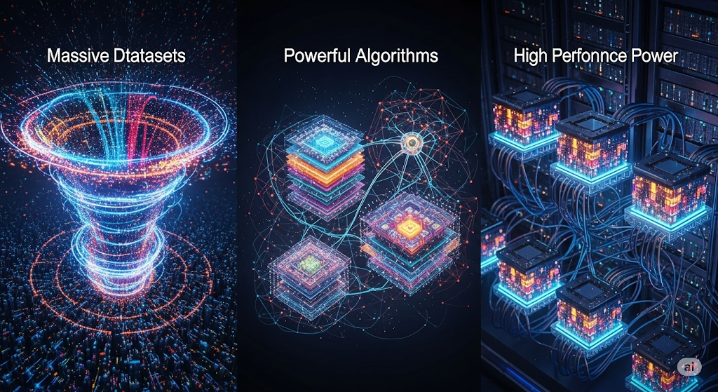 - Big Data: The internet enabled unprecedented data accumulation, notably the ‘ImageNet’ dataset with over 14 million images proved decisive.